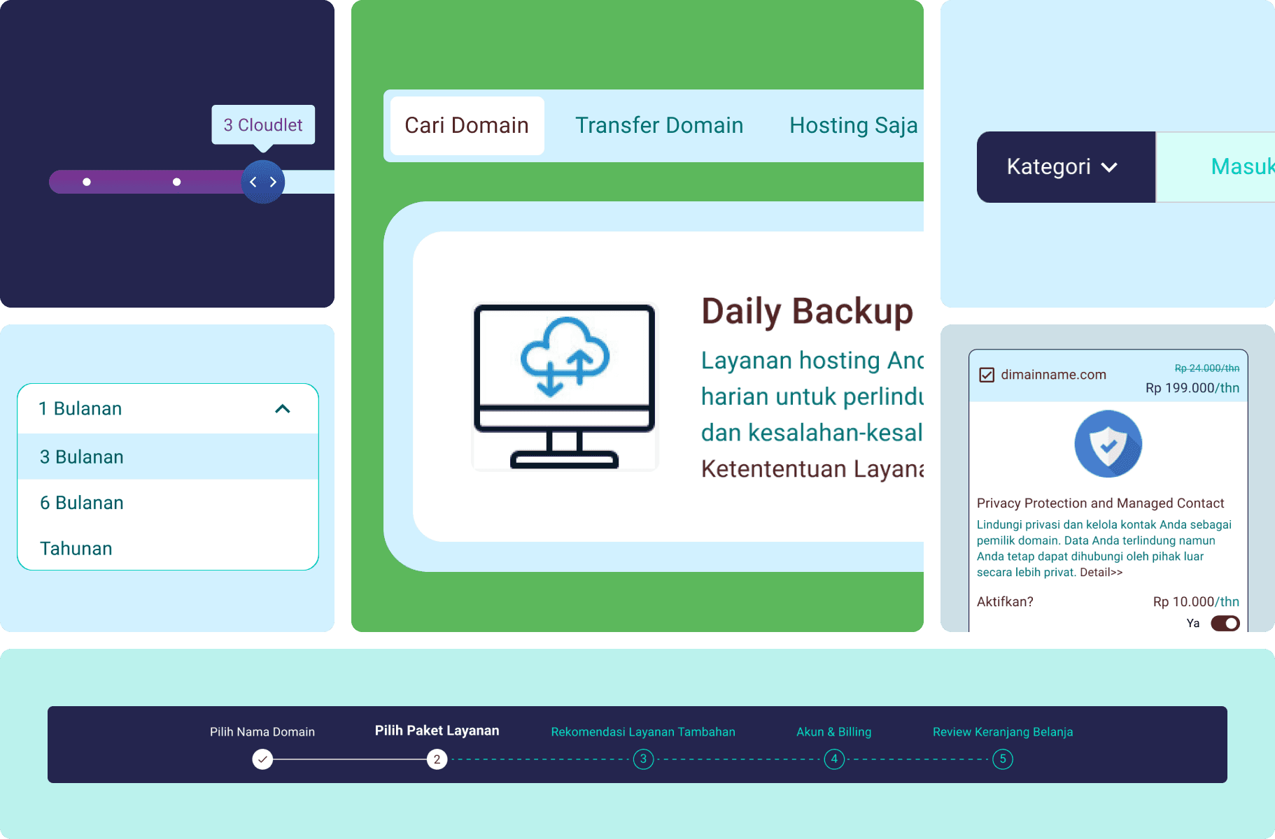During my internship at Rumahweb, I worked on a visual redesign of the Domain & Hosting Order page. The objective of this project was to enhance the clarity, consistency, and overall usability of the ordering process through visual and structural improvements.
