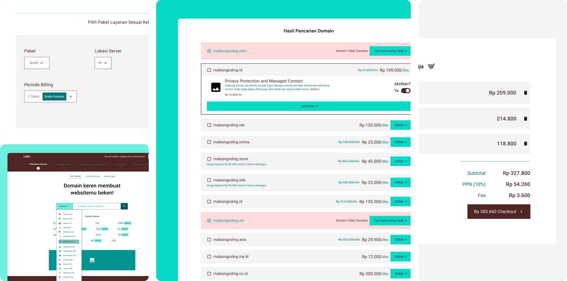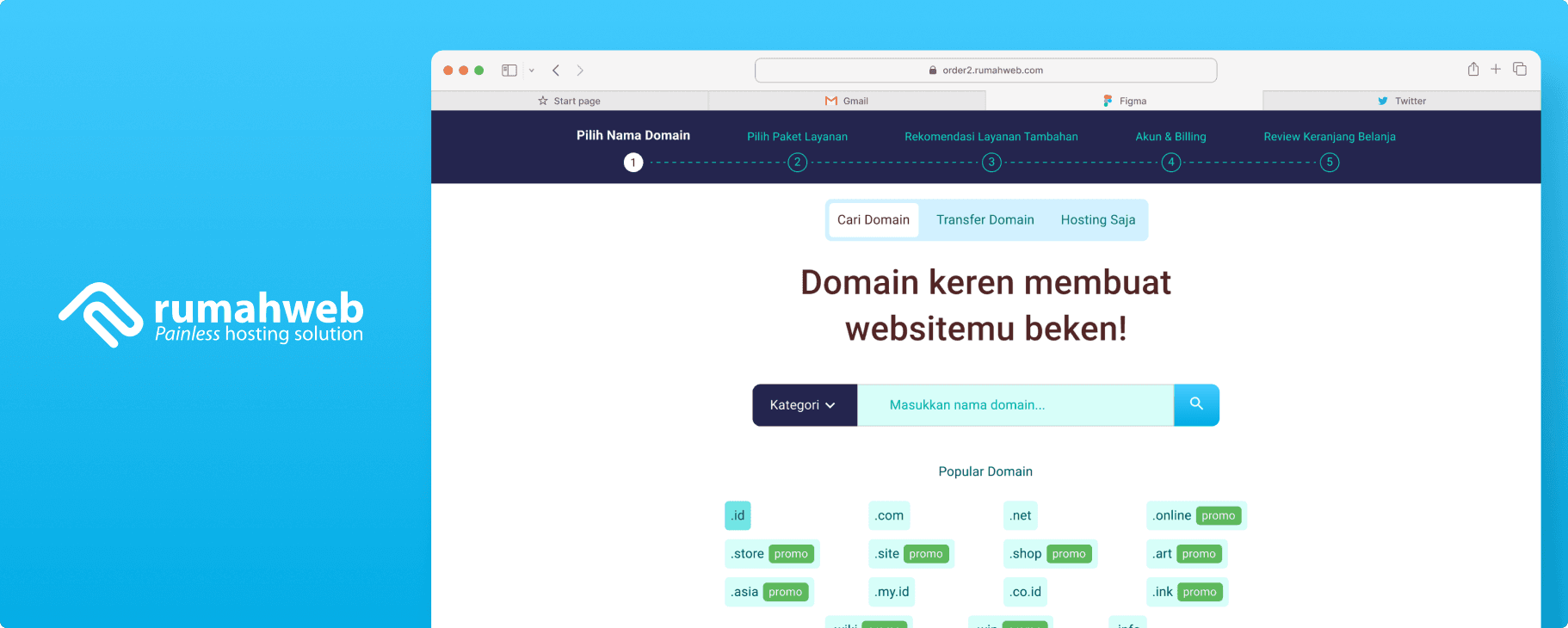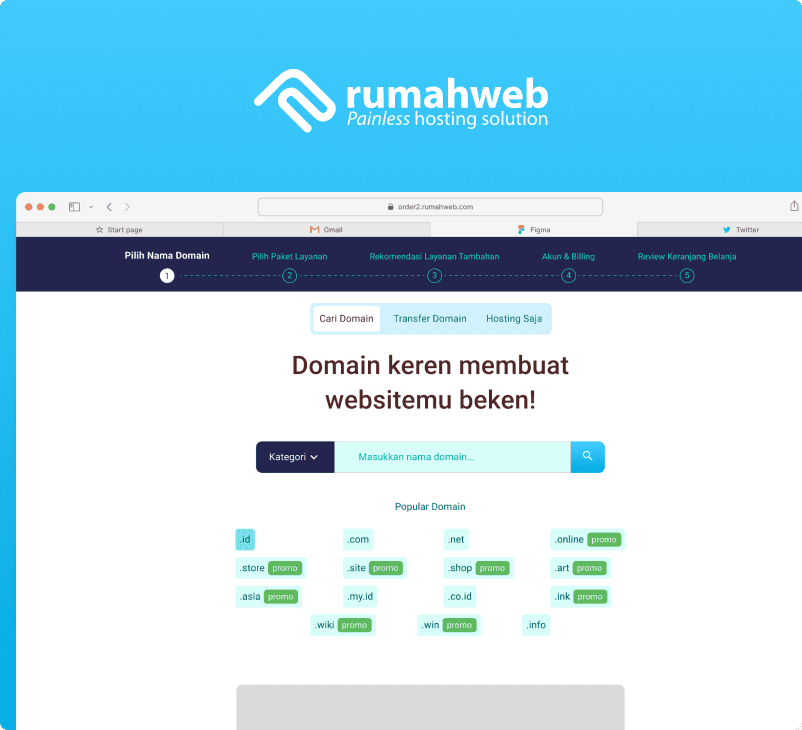 The Rumahweb order page is a key touchpoint where users purchase domains and hosting services.