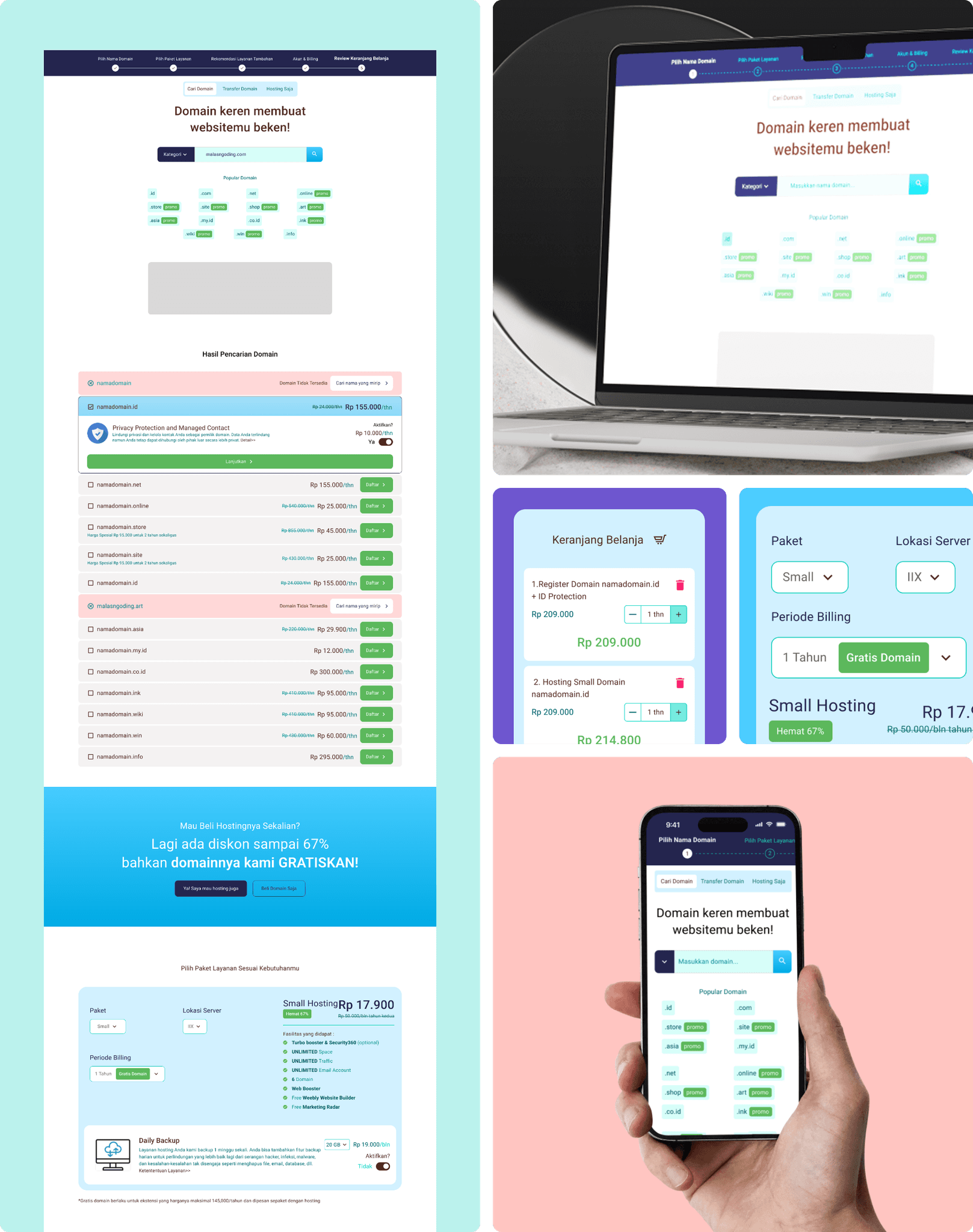 My goal was to simplify the visual structure and improve the content organization, allowing users to move seamlessly from domain selection to checkout.